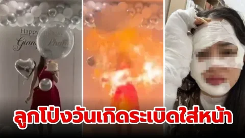 หญิงสาวถูกไฟไหม้หน้าอย่างรุนแรง หลังจากลูกโป่งวันเกิดที่ระเบิดใส่